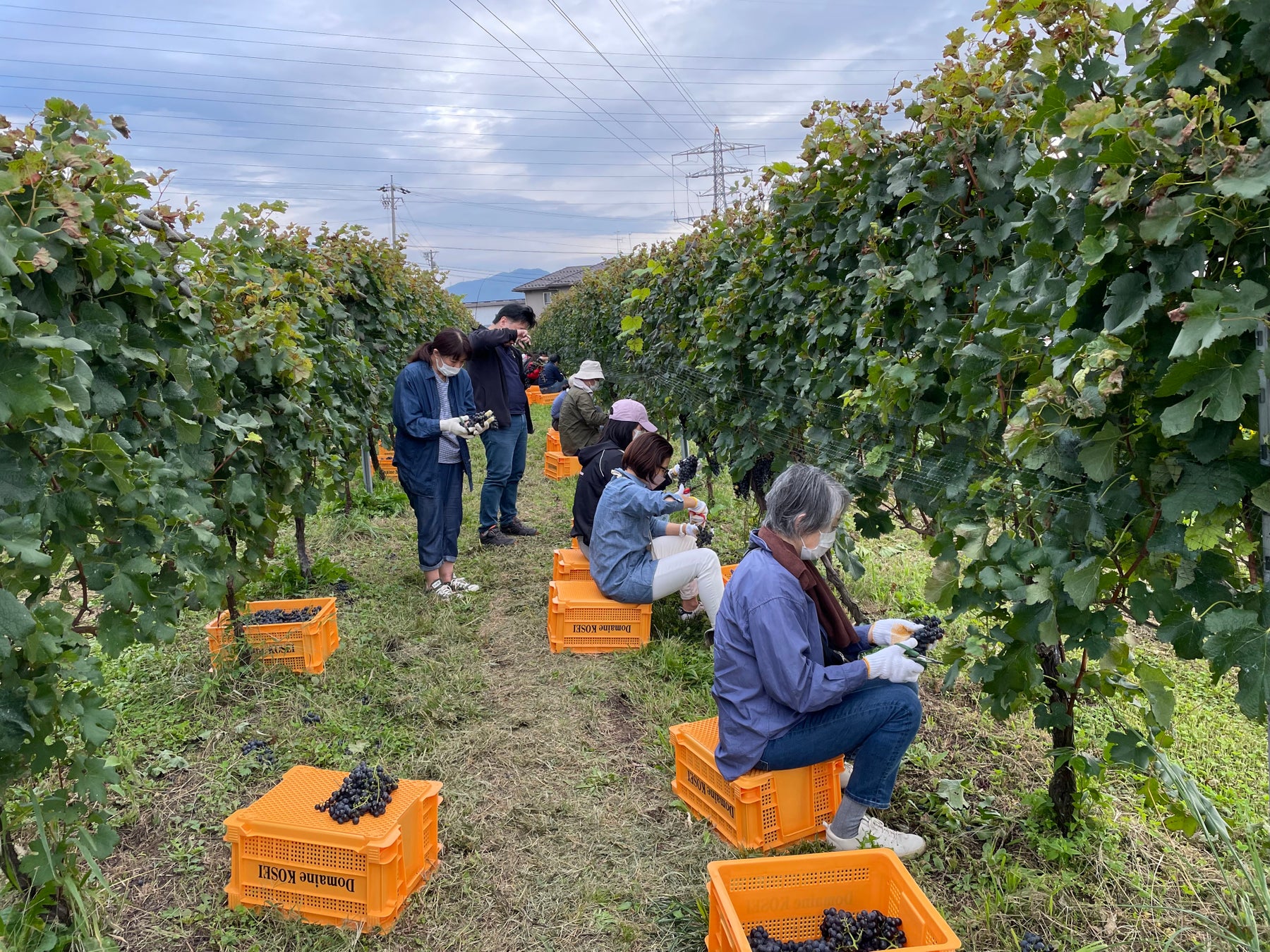 『三笠会館 100周年記念ワイン』は、長野県塩尻市片丘地区のワイナリー“Domaine KOSEI ドメーヌ・コーセイ”で製造しました。メルロ種のスペシャリストとして数多くの銘醸ワインを手掛けてきた味村興成氏が自身の名を関したワイナリーで、メルロ種を専門で栽培している日本最高品質のワイン造りを目指しています。ワインの製作には企画から約5年の歳月をかけて、三笠会館の多くのスタッフが長野県塩尻市に定期的に通い、ブドウ栽培や醸造作業などに携わり完成させました。