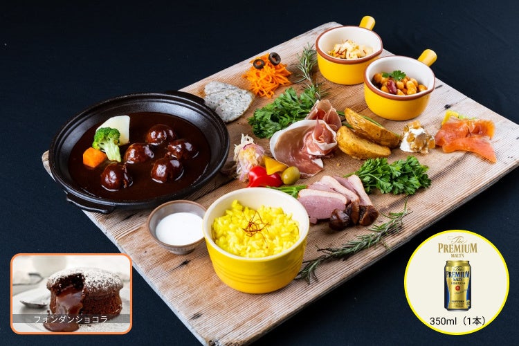【4月3日(日)まで限定】自家製ポークボールシチューとタパスセット(フォンダンショコラ・プレミアムモルツ・伊右衛門茶付)