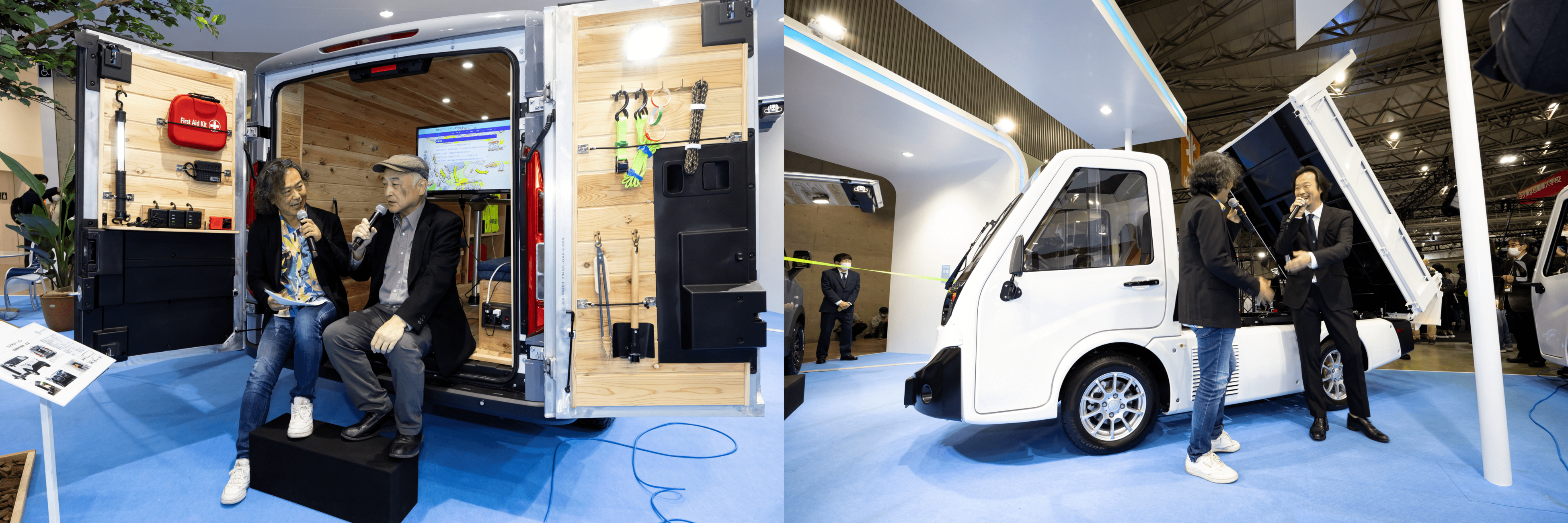 当日は、多用途EV商用車「ELEMOシリーズ」より新車種である中型EVバン「ELEMO-L」のお披露目をはじめ、新事業・業務提携に関する発表や、ELEMO活用企業とのトークセッションを行いました。