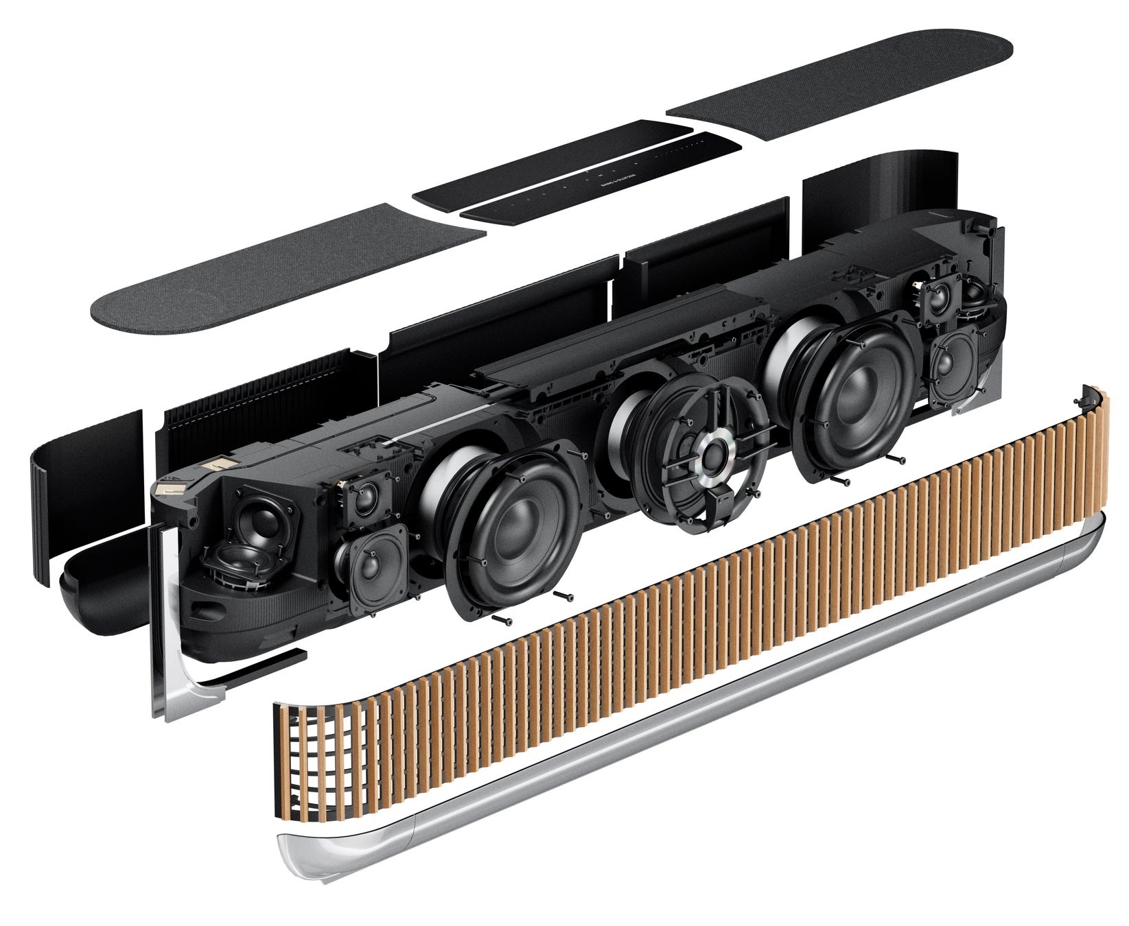 Beosound Theatreは、BANG & OLUFSENのフラッグシップスピーカーBeolab 90で開発されたビーム幅とビーム指向性コントロールをベースに、ダイレクト、サイド、アップファイアリングスピーカーの組み合わせによる新しい立体音響技術の特許を申請中です。これは全てのスピーカードライバーが単に音を出すだけでなく、そのビーム幅と指向性を制御するために協働し、側壁反射の影響を低減。リスナーに直接伝わる音を低減することで、空間の広がりを感じさせ、より没入感のある体験を提供します。