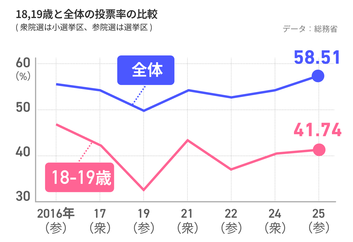 1. 社会的背景:若い世代の投票率は上昇中だが、まだ低い