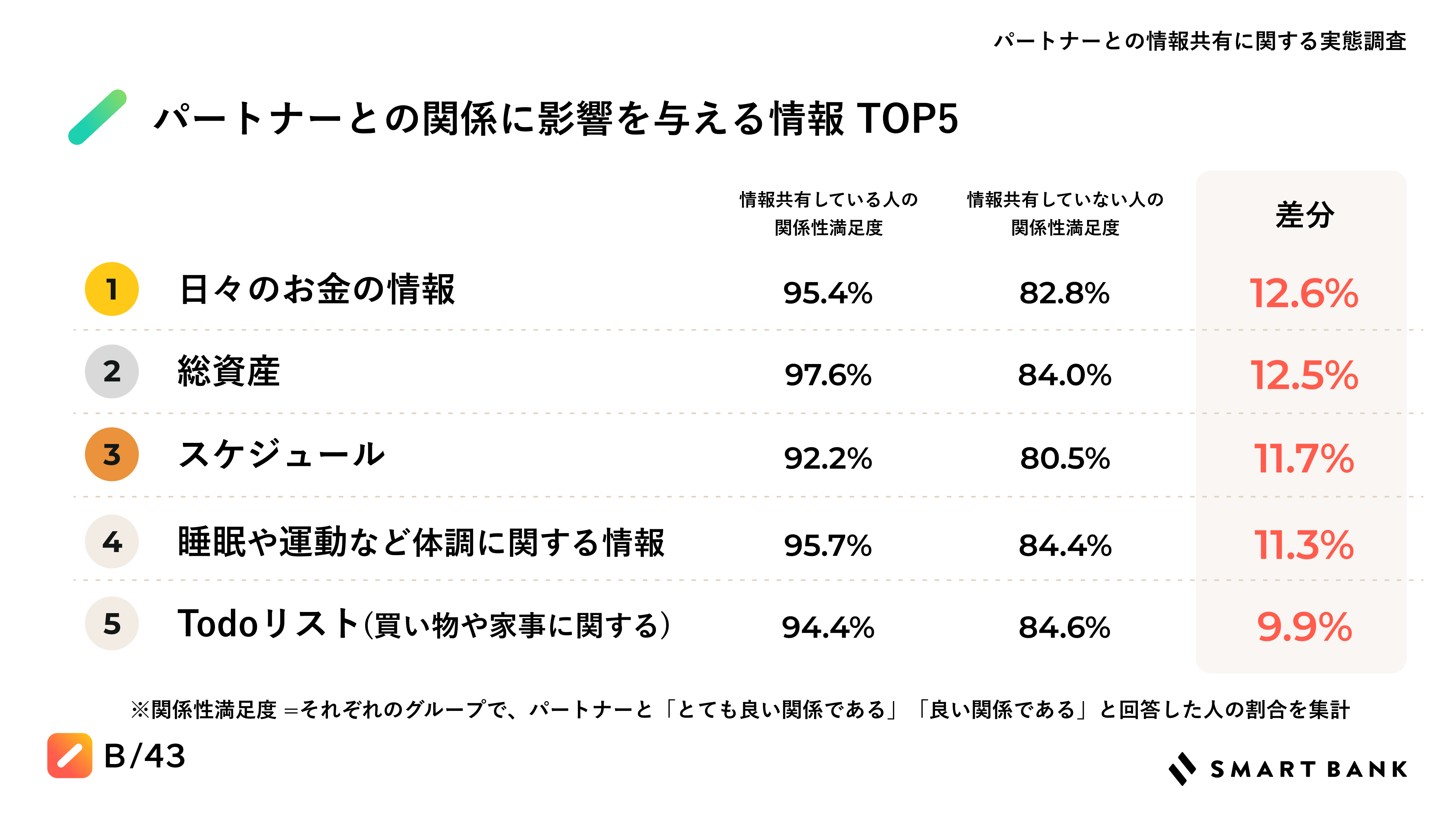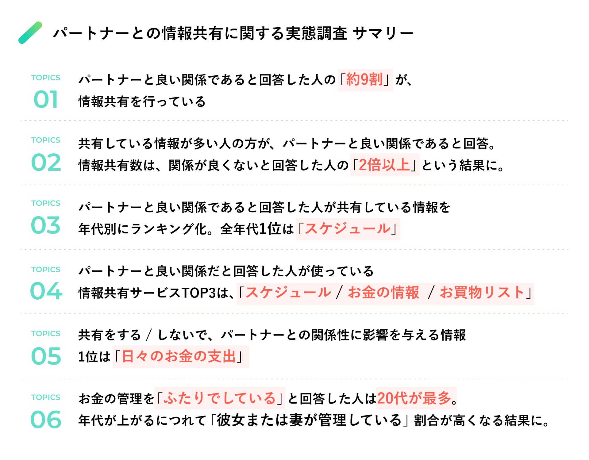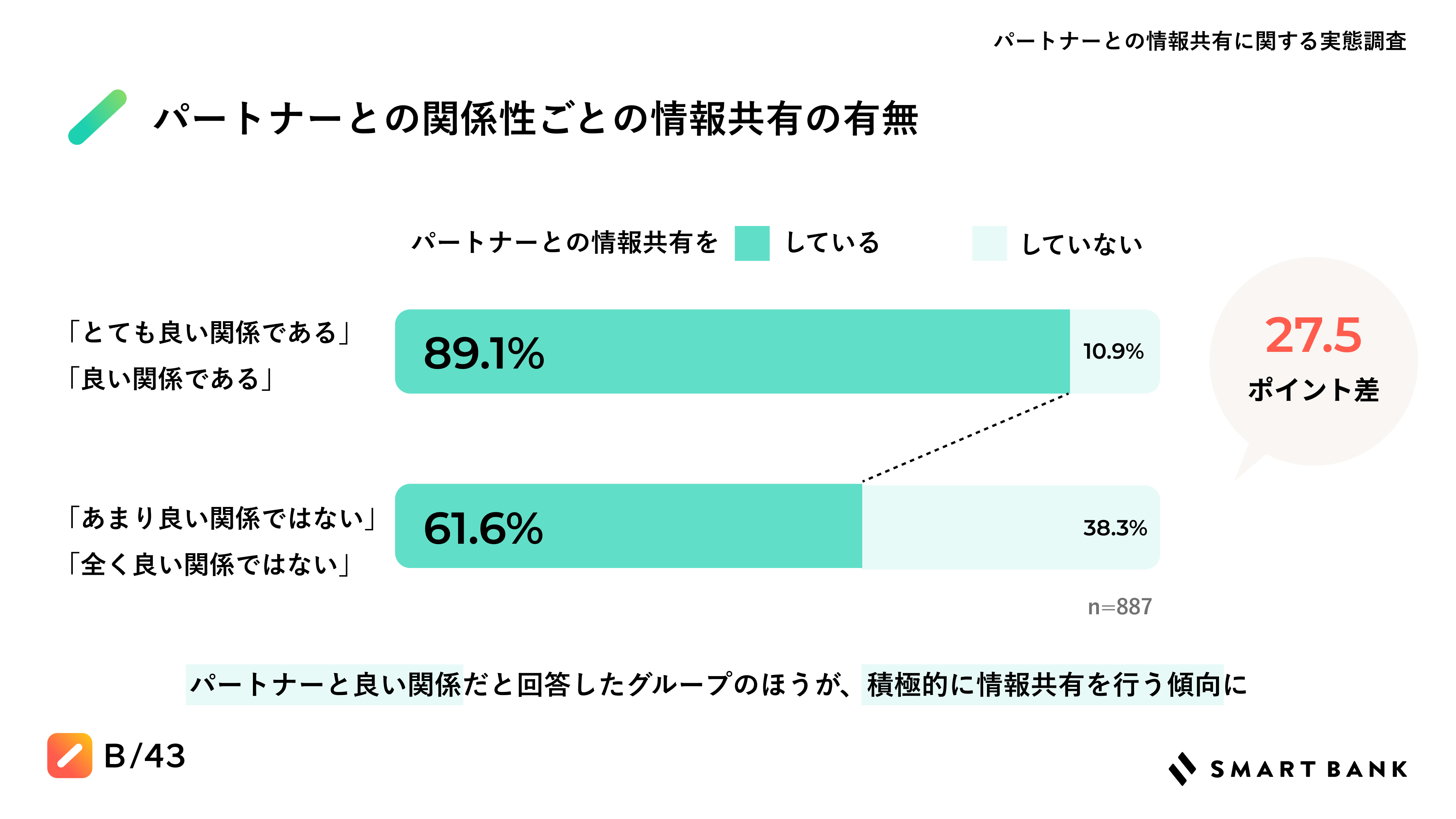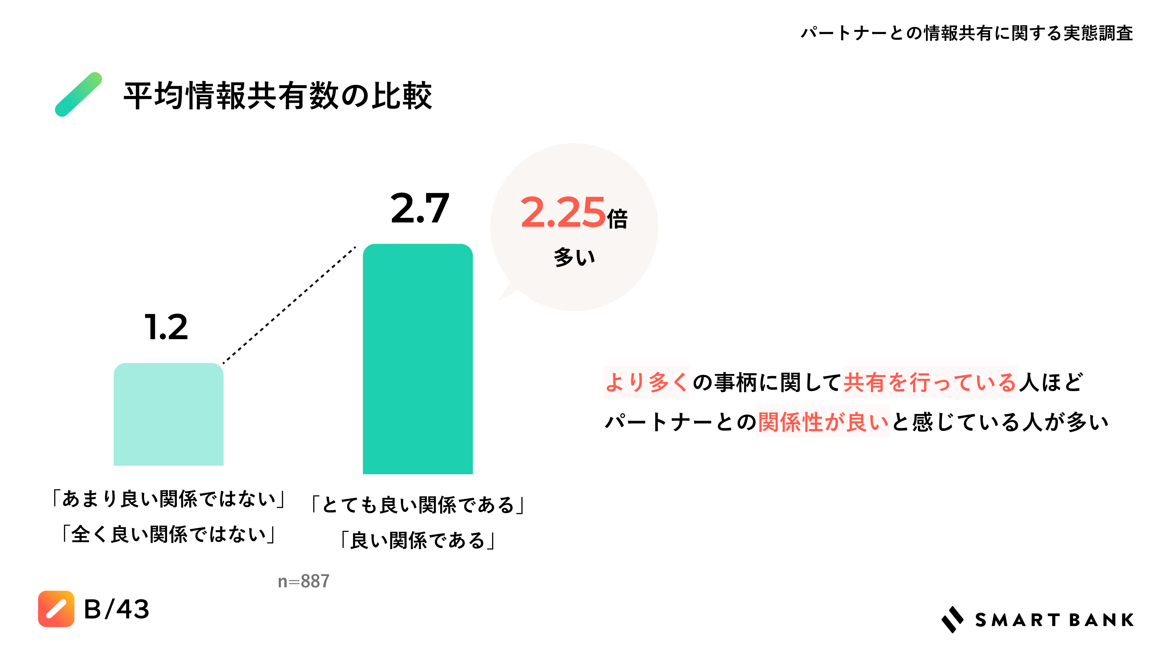 調査の結果から、情報共有の量がパートナーとの関係性に良い影響を与えているということは明らかです。