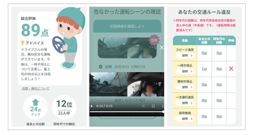 参加者は、4ヶ月間に渡ってドライブレコーダーを用いて運転データを収集し、AIによる月次の運転診断結果を受け取ります。