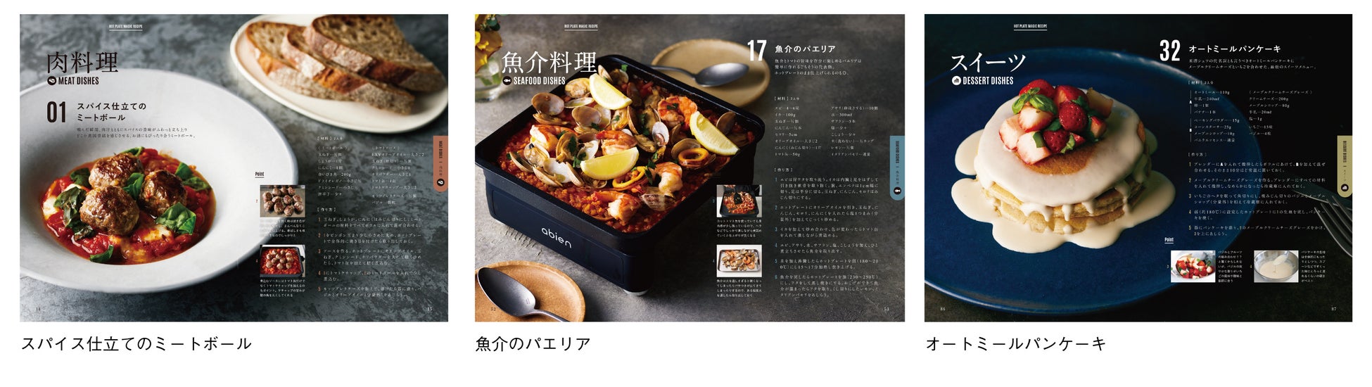 - ミートボール、パエリア、パンケーキなど幅広いジャンルのレシピを掲載