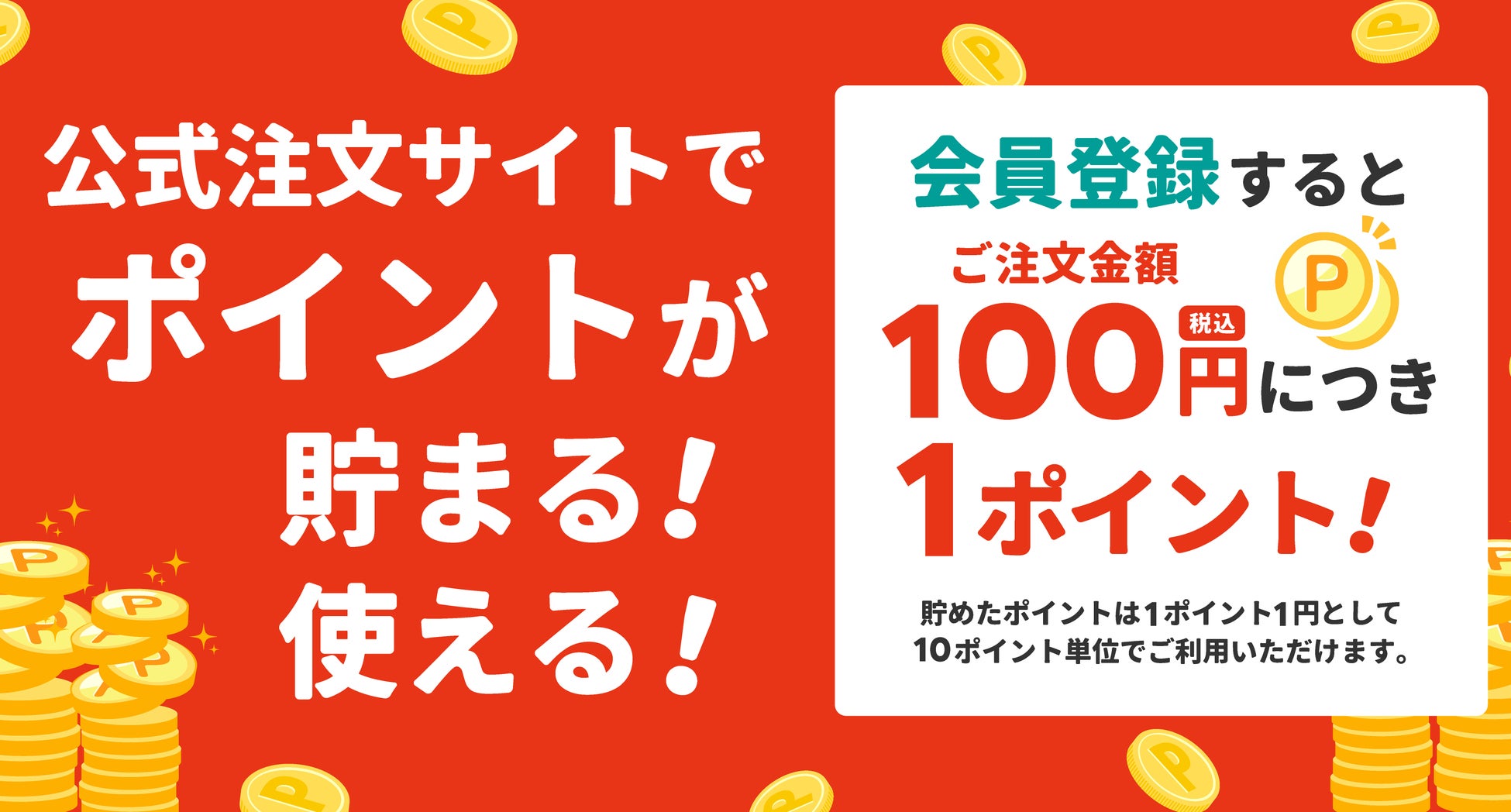 ピザポケット公式注文サイトには独自ポイント制度を設けており、通常は会員登録されているお客様がネットでご注文されると「ご注文合計金額の1%をポイント付与」されます。