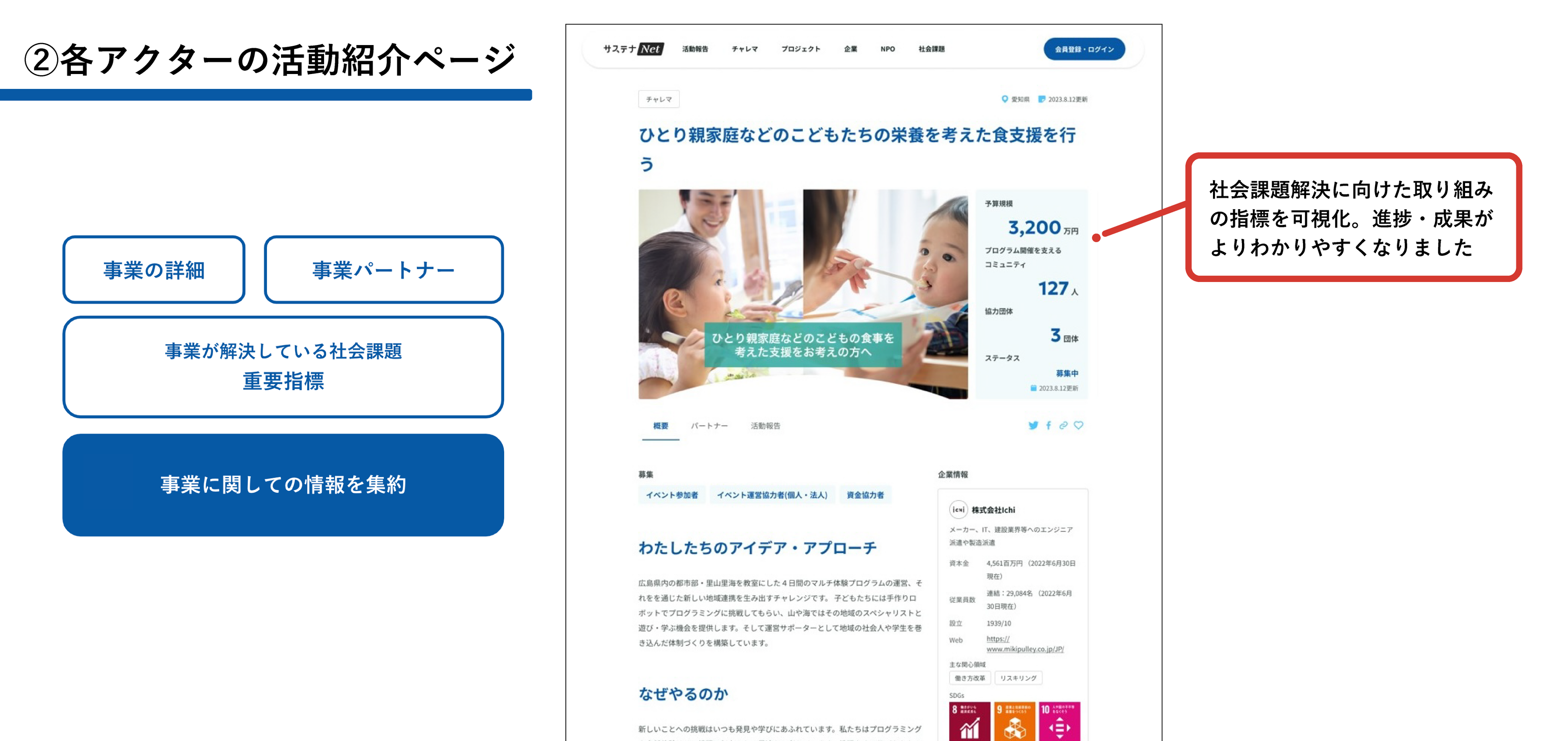 ②各アクターの活動紹介ページ
