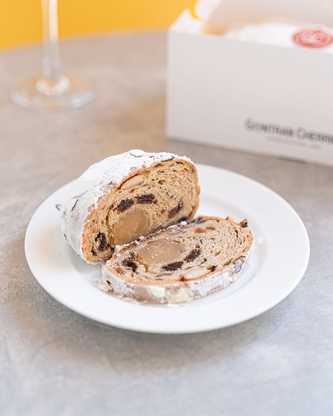 マジパンとレーズン、オレンジピール、アーモンドなどを包み込んだ本格的なクリスマスの定番アイテムです。ゴントランシェリエならではのこだわりの原材料と製法で一つ一つ丁寧に作り上げました。