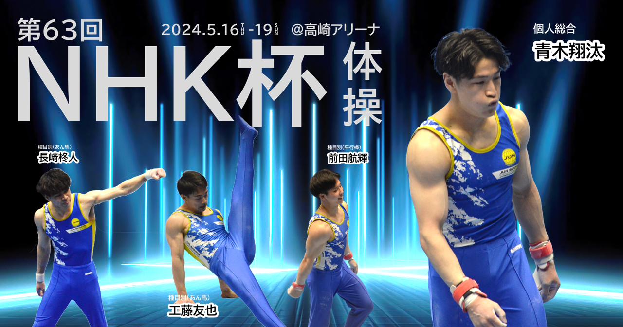 5月16日(木)から19日(日)にかけて、群馬県高崎市の高崎アリーナにて第63回NHK杯体操が開催されます。本大会は、パリオリンピック代表選手を決定するための重要な大会です。男女ともに、4月11日~14日に行われた全日本選手権個人総合予選・決勝の合計得点上位者が出場します。
