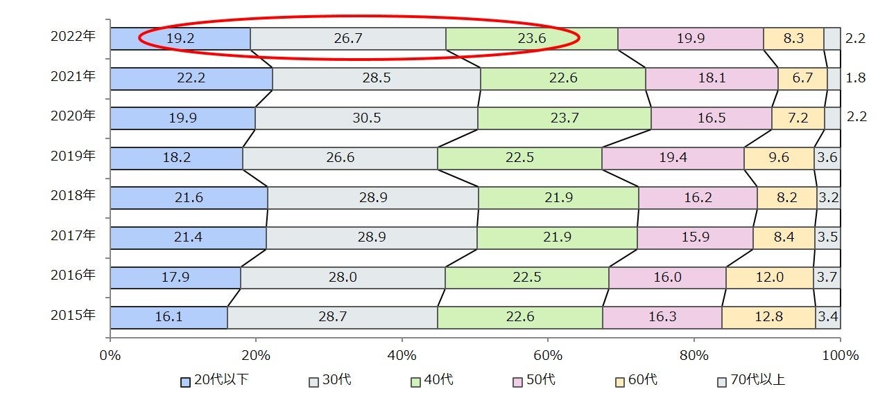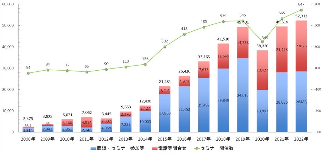 ※ 2020年より、新型コロナの影響でセミナー等がオンライン開催となり、一部セミナーの参加者が急増したため、それまでの調査実態との乖離を防ぐ目的で、「窓口相談者」と「セミナー参加者」を分けて発表しています。