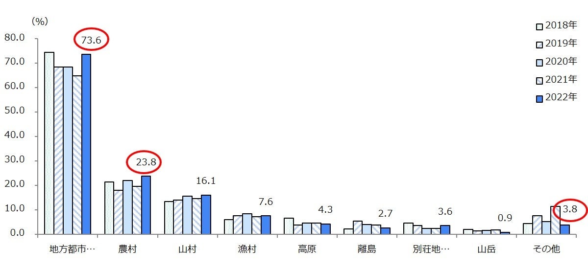 希望する地域類型〔複数回答〕(2018〜2022:暦年)