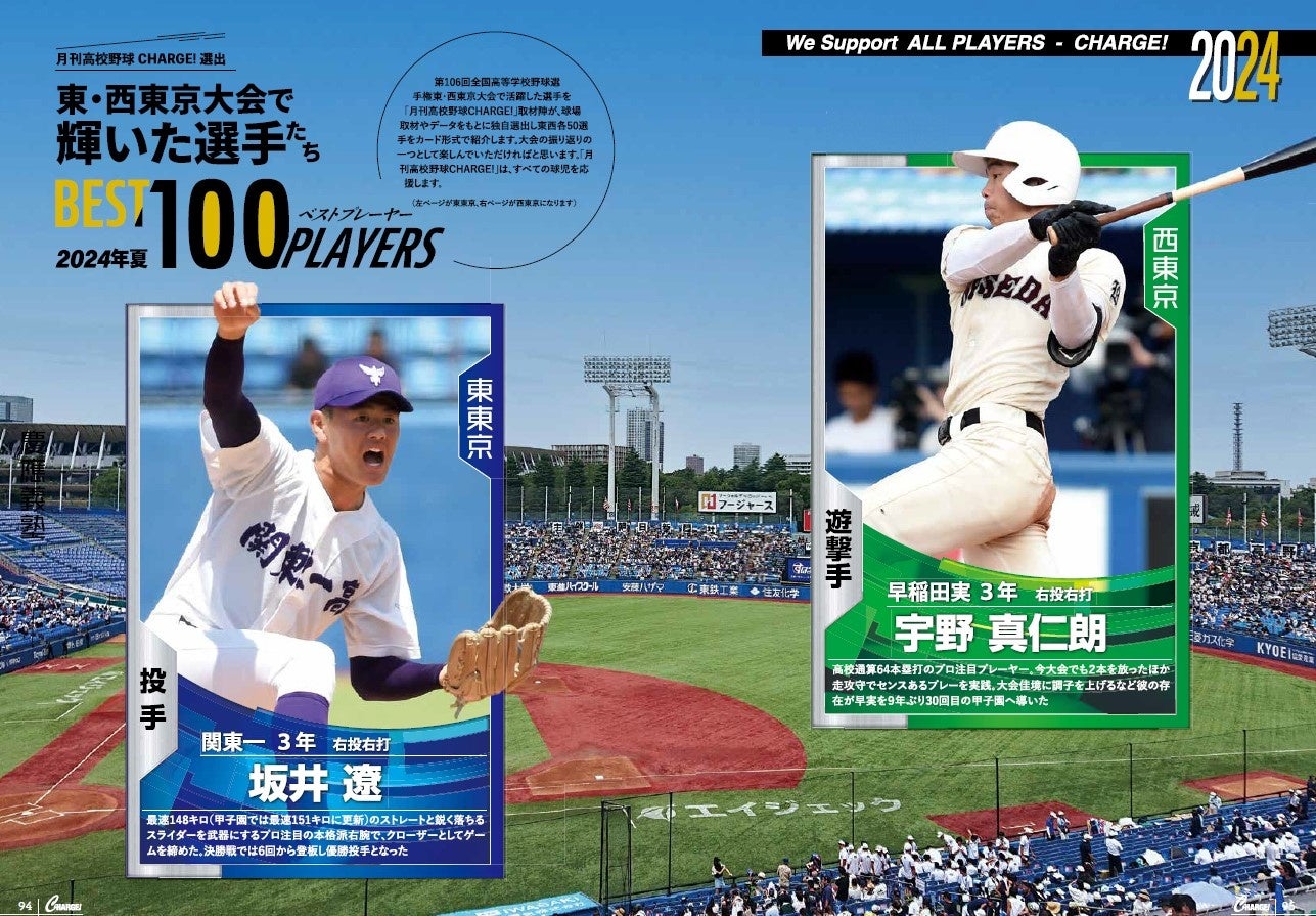 第106回全国高等学校野球選手権東・西東京大会で活躍した選手を「月刊高校野球CHARGE!」取材班が球場取材やデータをもとに独自選出し、東西各50選手をカード形式で紹介します。大会の振り返りの一つとして楽しんでいただければと思います。