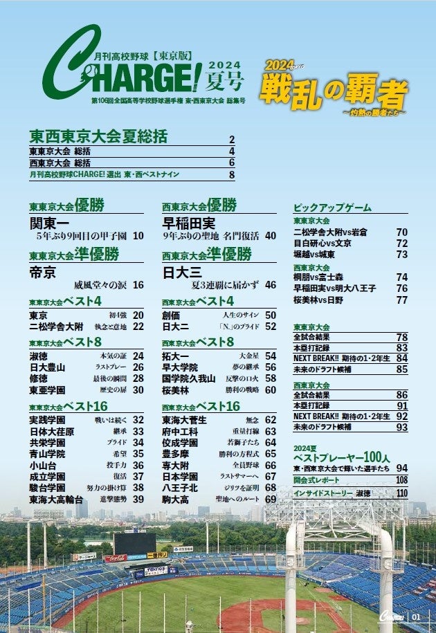 東・西東京大会ベスト16以上の高校をCHARGE取材班が徹底レポート。各校の戦いぶりやストーリーが掲載されています。
