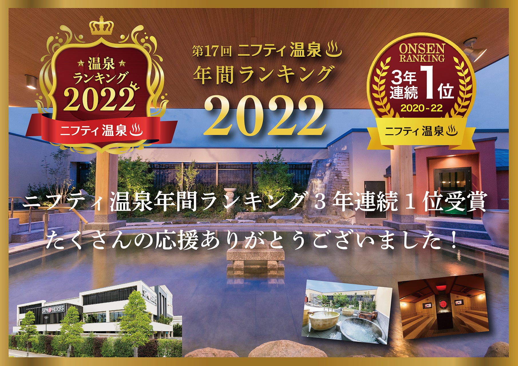 埼玉最大級のスパリゾート「美楽温泉 SPA-HERBS」がニフティ温泉年間ランキング2022にて「全国総合1位」3連覇を達成!3連覇を記念した特別イベントを開催!