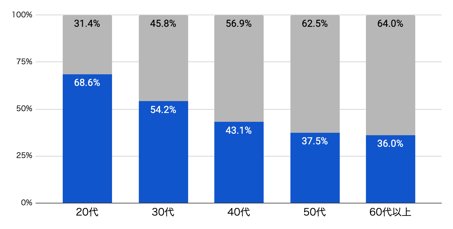 年代別に見ると、世代ごとの意識の違いが見えてきます。