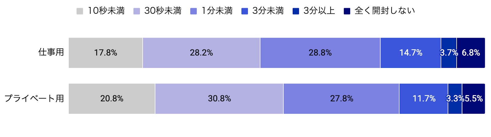 仕事用アドレスでは、業務に直結するものや、必要性が高いものだけを選んで開封する傾向がありそうです。