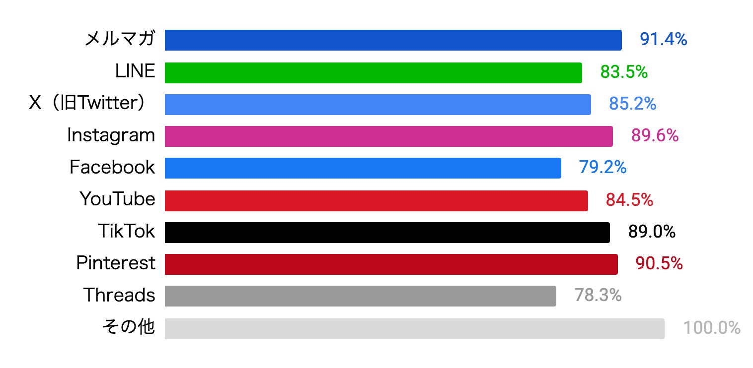 近年は、YouTubeやTikTokなどの動画コンテンツ、X(旧Twitter)などのSNSなど、企業と顧客の接点が大きく広がっています。情報収集の手段が増えたことで、メルマガに「とりあえず登録していた層」が減少したのかもしれません。