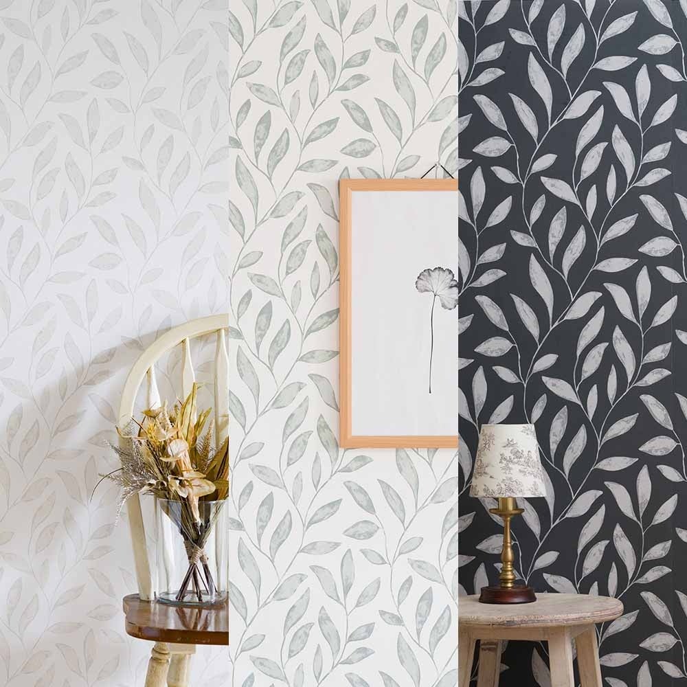 北欧らしいシンプルなリーフ柄。ふんわりとした葉のデザインはシンプルながら繊細でおしゃれ。全体が和紙のようなテクスチャが入ったナチュラルな質感とモノトーンの清潔感が、どんなお部屋にも合わせやすい。ブラック、ホワイト、グリーンの3色展開。