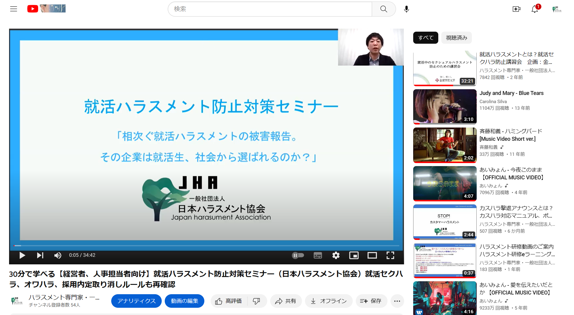 【経営者、人事担当者向け】就活ハラスメント防止対策セミナー動画(約30分) YouTubeより再生