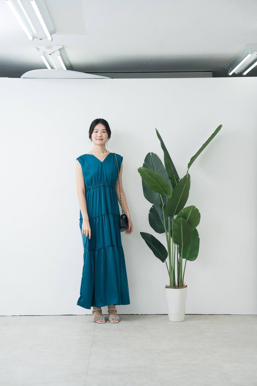 オケージョン専用だと出番が限られてしまいますが、こちらのドレスはシンプルなデザインなので、着こなし次第でデイリーからリゾートまで、幅広いシーンでご着用が可能。