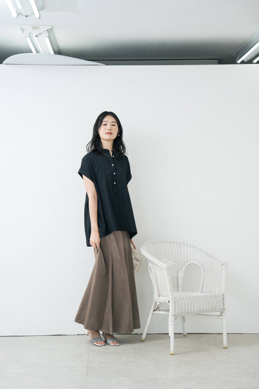 まるで、何も着ていないと錯覚するほどの楽さと肌触りの良さに、贅沢にあしらったタックのボリューム感と、生地の上質さが伝わってくるラグジュアリー感の1着となっています。