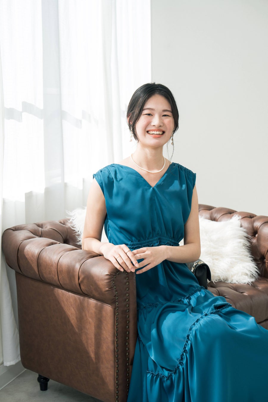 たっぷりとした着丈はもちろん、ネックラインの開き具合や、肩幅など、細かい寸法をすべて高身長女性のサイズ感にこだわってつくりました。上品な光沢感のあるサテン地が華やかさを演出してくれます。