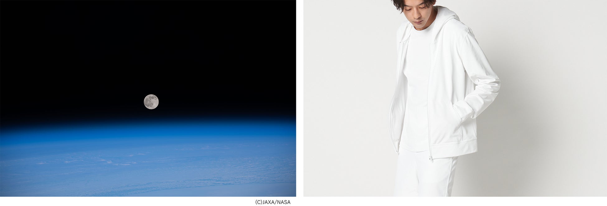 「MOON-TECH®」は、東レの先端素材「フィールドセンサー®EX」をベースに、長期間の閉鎖された環境となる宇宙ステーションでの快適な生活のために開発されたJAXA・東レ共同開発宇宙技術など12個におよぶ「過剰なほどの機能性」を高いレベルで搭載した最新の先端素材です。