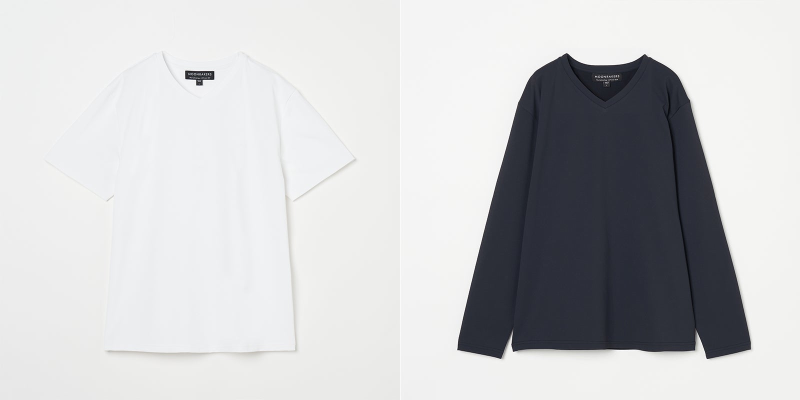 「MOOM-TECH® Vネック TEE」は、アウターとしても使える美しさにこだわり抜いた仕様と、インナーとしても使いまわせる適度な肉厚で、1年間を通じてご愛用いただける今までにない「究極のアウターインナー兼用VネックTシャツ」を目指した商品です。