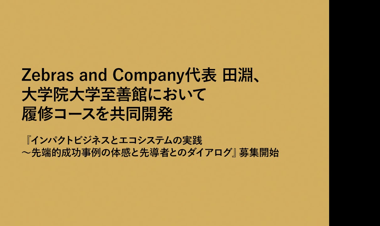 Z&C代表 田淵、大学院大学至善館において履修コースを共同開発『インパクトビジネスとエコシステムの実践 ~先端的成功事例の体感と先導者とのダイアログ』募集開始