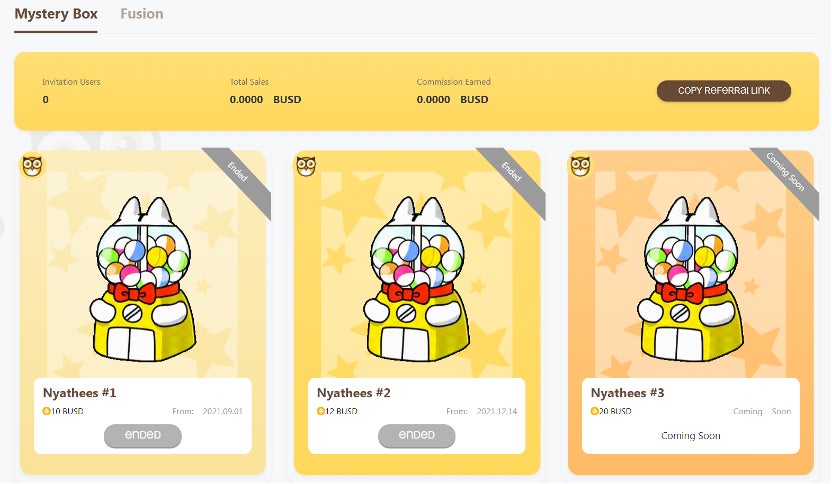 OVOは、にゃっちーず(Nyathees)NFTとおにぎりまん原作のCOG(Cuty Owl Girls)で話題となっているNFTプラットフォームです。IPコンテンツの特徴を最大限に発揮できるサービスで現在注目を集めています。Dao chainが運営するOVOは他のNFTプラットフォームとは異なり、IPコンテンツ一つひとつを大切に思い、プロダクトマネジメント、エコシステムデザイン、マーケティング戦略等のソリューションを提供しています。例えば、にゃっちーずNFTにはガチャ機能、Fusion(合成)機能、Picture Book(図鑑)機能、C2E機能、ホログラフィックAR機能等々をすでに実装しました。