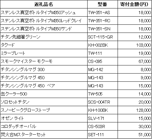 三条市とスノーピークとの間で地域活性化に向けた包括連携協定を令和3年7月に締結しており、ふるさと納税での連携強化において、「スノーピーク商品の活用等によるふるさと納税の新たな寄付者の獲得」が協定に盛り込まれました。11月下旬より「チタンシングルマグ」を皮切りに、「ステンレス真空マグ」や「焚火台Mスターターセット」などを順次返礼品として出品していましたが、予想を上回る人気をいただき品切れとなっていました。