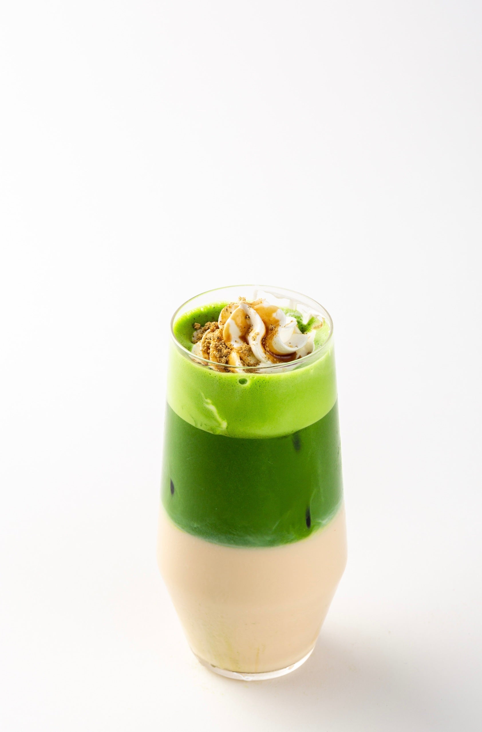 蜜たっぷりの安納芋の美味しさと本格抹茶のマリアージュが楽しめる贅沢なごちそうドリンクです。安納芋をたっぷり使ったはちみつミルクシェイクの上に、ホイップクリーム、蜜芋モンブランクリームをトッピング。アクセントにカリッと揚げたお芋のチップス、ほんのりビターなカカオニブを加え、ボリュームたっぷりでも食べ飽きない美味しさに仕上げました。ATELIER MATCHA自慢の濃茶ソースをたっぷりかけてお召し上がりください。