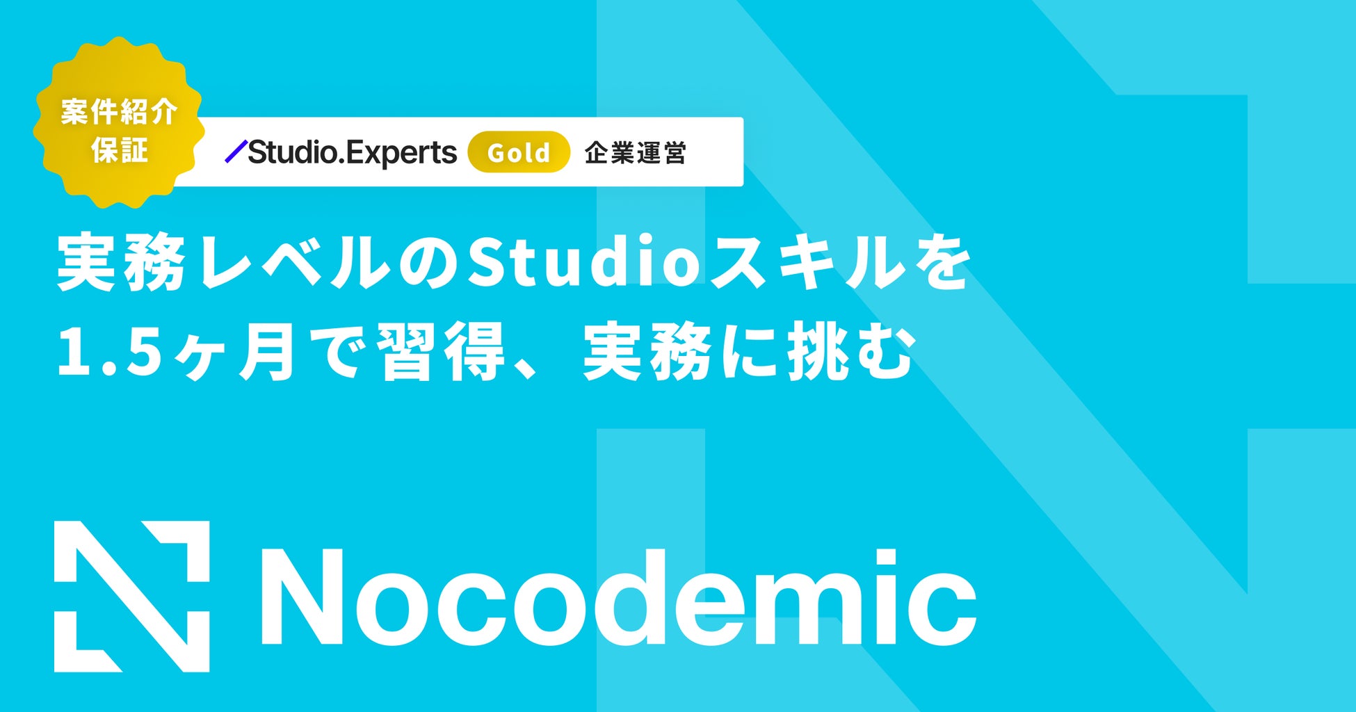 最速で実務レベルのノーコードスキルを獲得できる短期集中オンライン学習プログラムです。卒業後には案件紹介確約。確実な案件発注、案件をはじめサポート品質を保つため、毎月10名限定での募集となっています。
