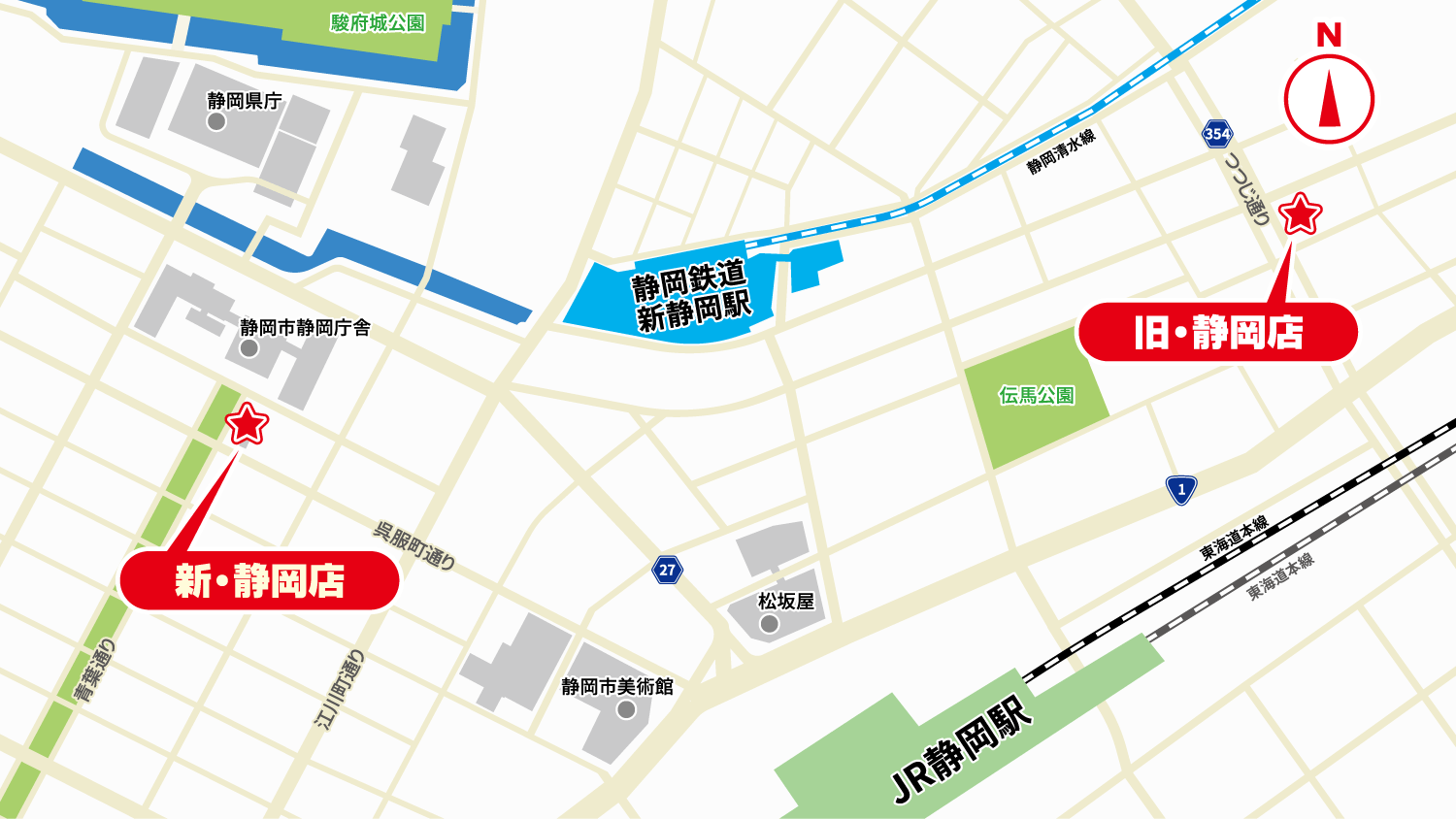新しい店舗は静岡市の中心地を走る呉服町通り沿い、青葉通りと交差する静岡呉服町名店街の一角となります。