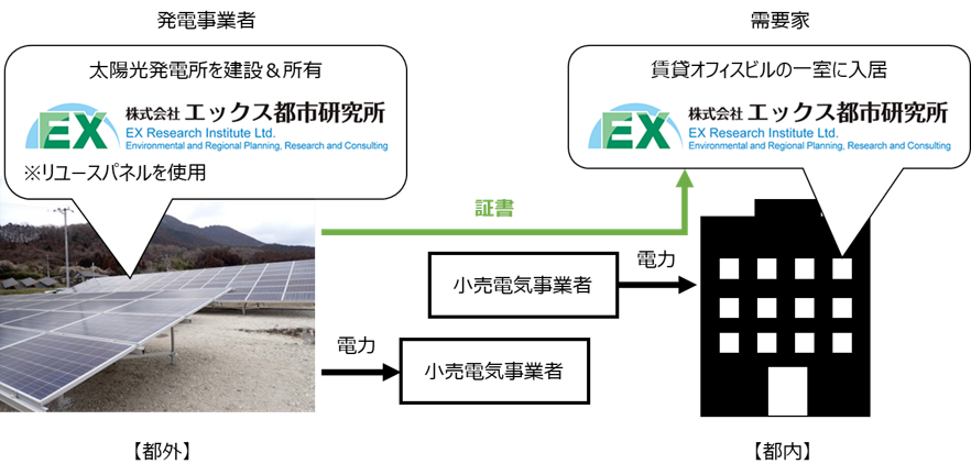 リユースパネルを用いた非FIT太陽光発電所を建設し賃貸オフィスでの再エネ電力100%を達成