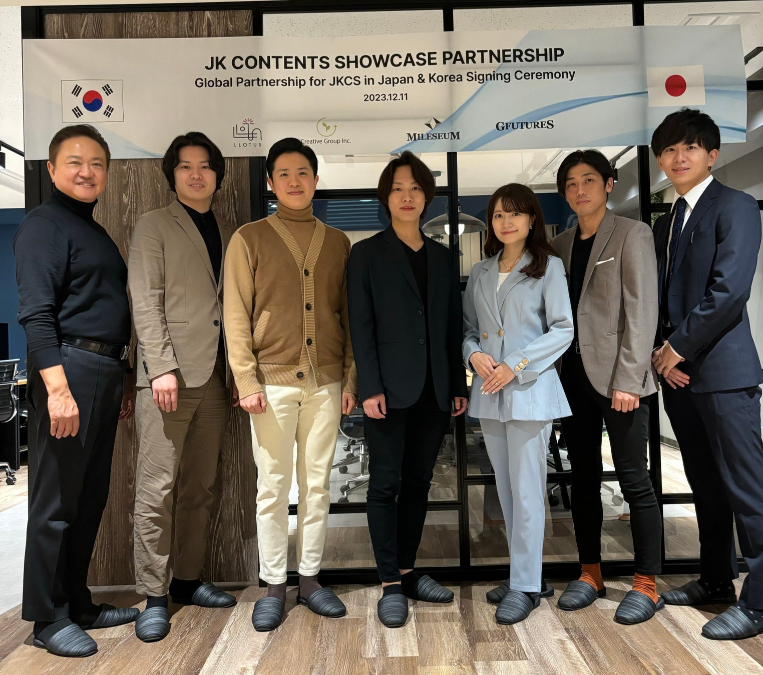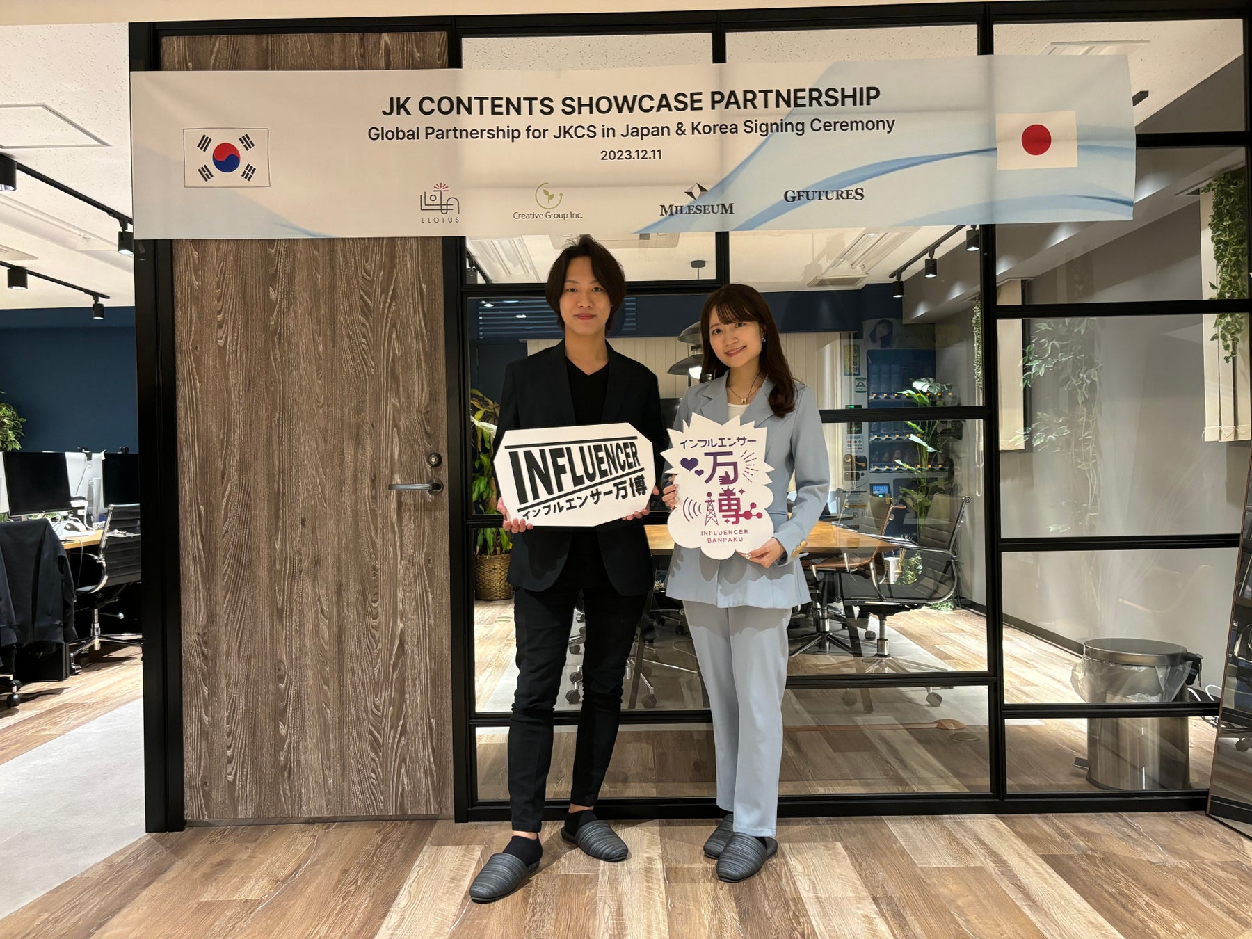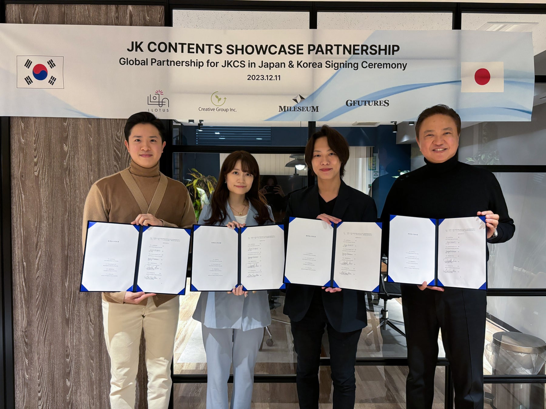 日本と韓国のPR&マーケティング企業である株式会社Creative Group(本社:東京都千代田区、代表取締役:中原一真)とインフルエンサー×企業の“PRのための”展示会「インフルエンサー万博」(https://influencer-banpaku.com/)を運営する株式会社LLOTUS(本社:東京都目黒区、代表取締役:川口加恋)は韓国企業で日本と米国中心の海外マーケティング&コンサルティング専門企業である株式会社G-Futures(本社:ソウル特別市、代表取締役:Seong Hoon Bae)及びMILESEUM株式会社(本社:ソウル特別市、代表取締役:David Dongchul Bae)と共に韓国企業の日本進出を支援するオフラインショーケース「JK CONTENTS SHOWCASE」(以下「JKCS」)開催を合意し、日韓グルーバルパートナーシップ協定を締結しました。