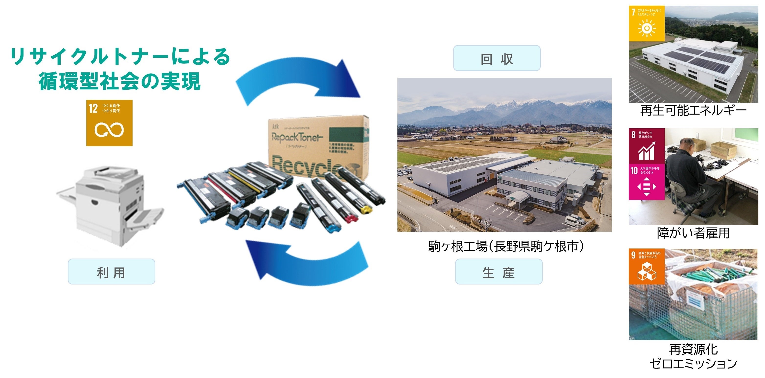 ・当社の「リパックトナー」(リサイクルトナー)を駒ヶ根市が使用し、使用済みトナーカートリッジを当社駒ヶ根工場へ返却することで循環型社会貢献を図ります。