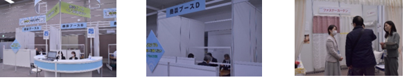 今回、新たな取組みとして、会場内に「マッチングステーション(商談ブース)」を設け、広くWebサイトにて事前予約を受付けすることにより、出展者、来場者間の商談を促進しました。