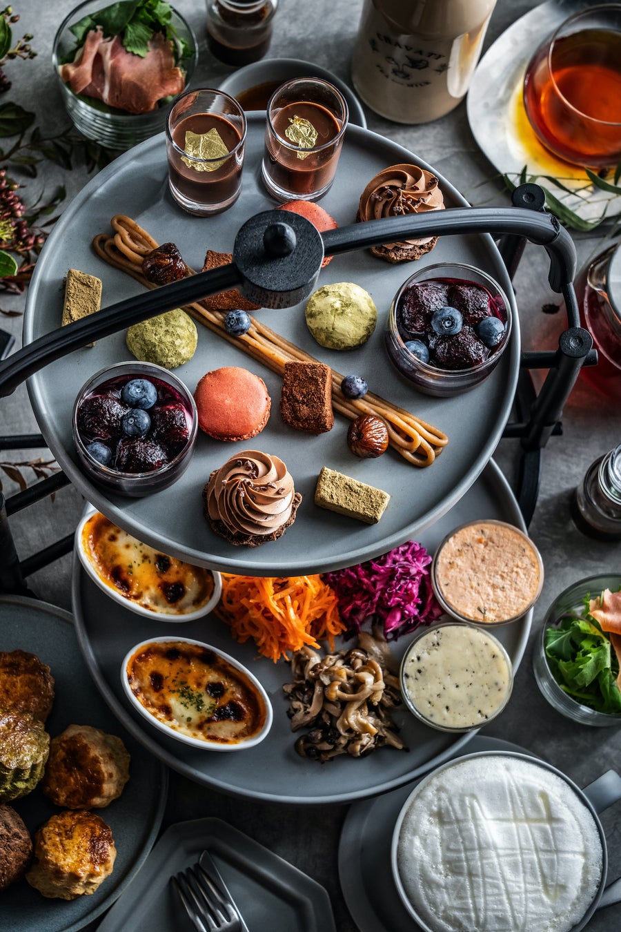 その他、「白玉とブルーベリーのチョコレートぜんざい」や「カカオときなこのわらび餅」といった、和洋折衷のオリジナルスイーツと、セイボリーには、バルサミコとレーズンのドレッシングを添えた、生ハム・グリーンハーブサラダや、きのこ三種のガーリックマリネ、ミネストローネなどをご用意しております。