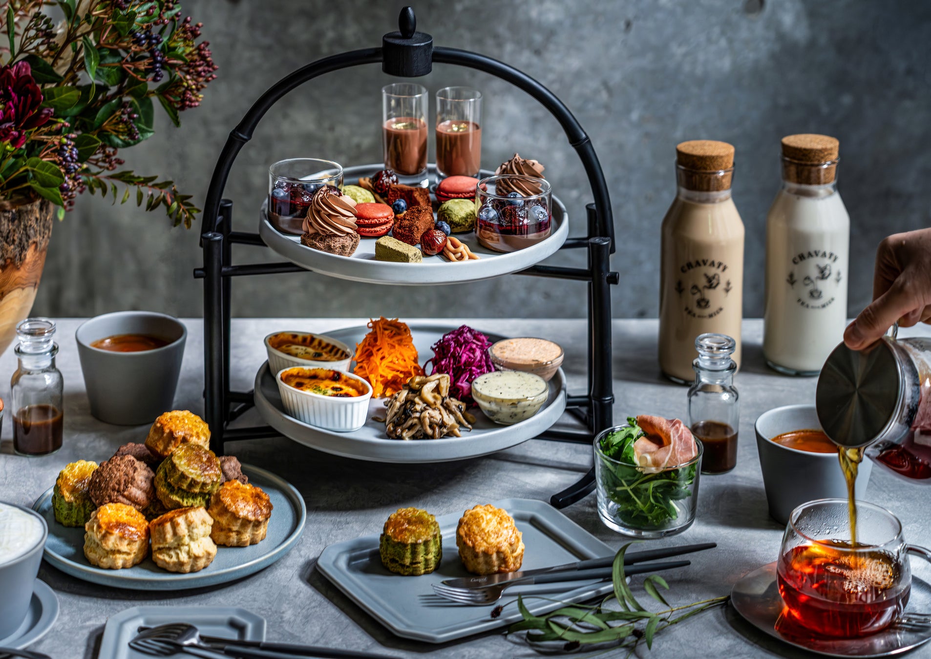また、毎朝焼き上げる手作りスコーンは、プレーンや抹茶の他、くるみ、さつまいもなど数種から好きなだけお選びいただくことができ、たくさんお楽しみいただけるよう小さく可愛らしいサイズで焼いております。スコーンには、渋皮マロンクリームの他、発酵バターを使用した自家製のトリュフバターやサーモンリエットを添えても一層美味しくお召し上がりいただけます。紅茶はCHAVATYのシグニチャーである、スリランカ産セイロンウバのクオリティーシーズンをはじめ、季節のフレーバーティーやハーブティーなどティーフリーにて幅広いメニューをご用意し、ふわふわのフォームが人気のティーラテもたっぷりとお楽しみいただけます。
