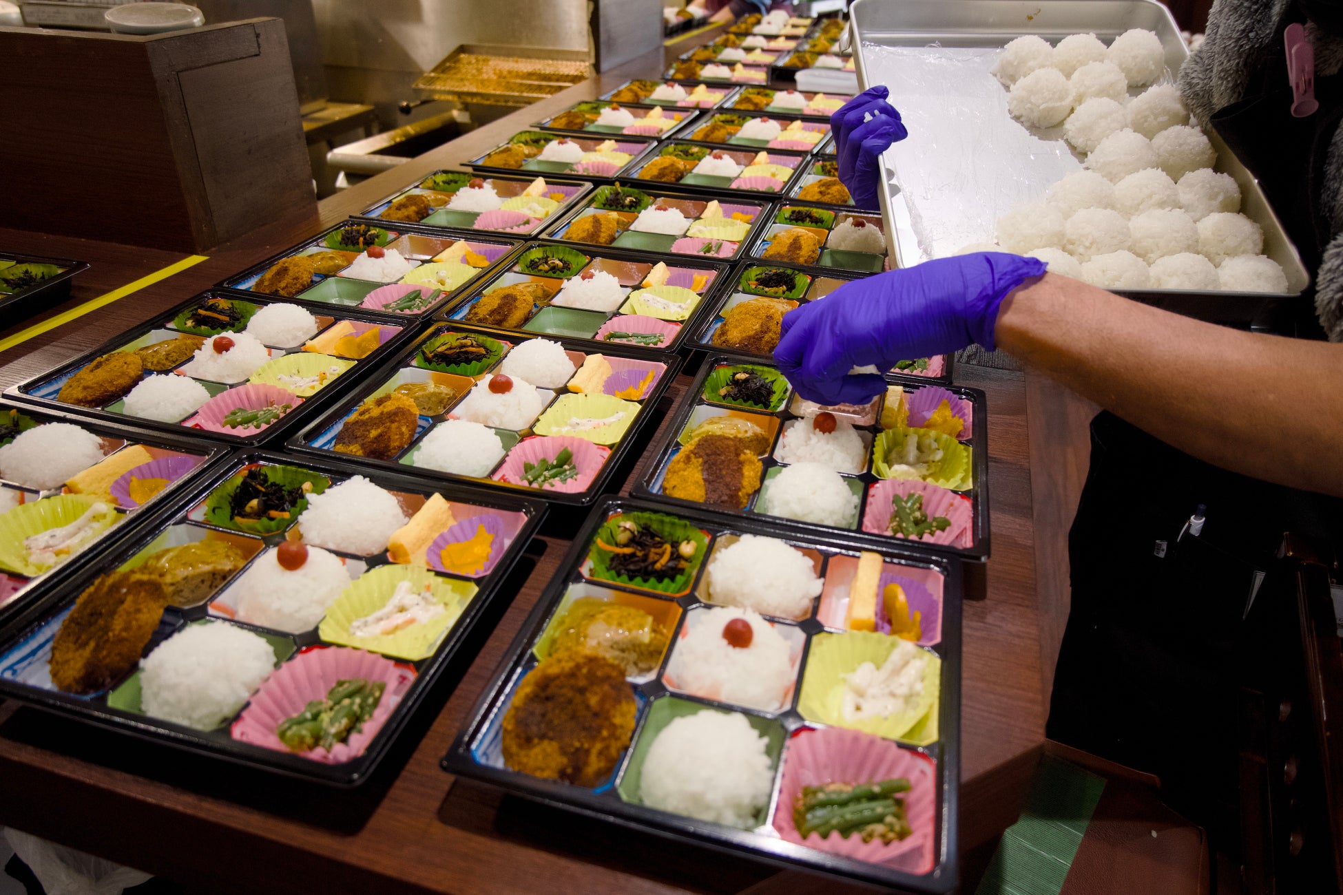 たまや弁当では配達弁当を作ることを通じて雇用の機会を創出しています。施設で働く方々は、支援員の支援を受けながらそれぞれができることを懸命に行います。作られたお弁当は地域に配送され、大変ご好評いただいています。