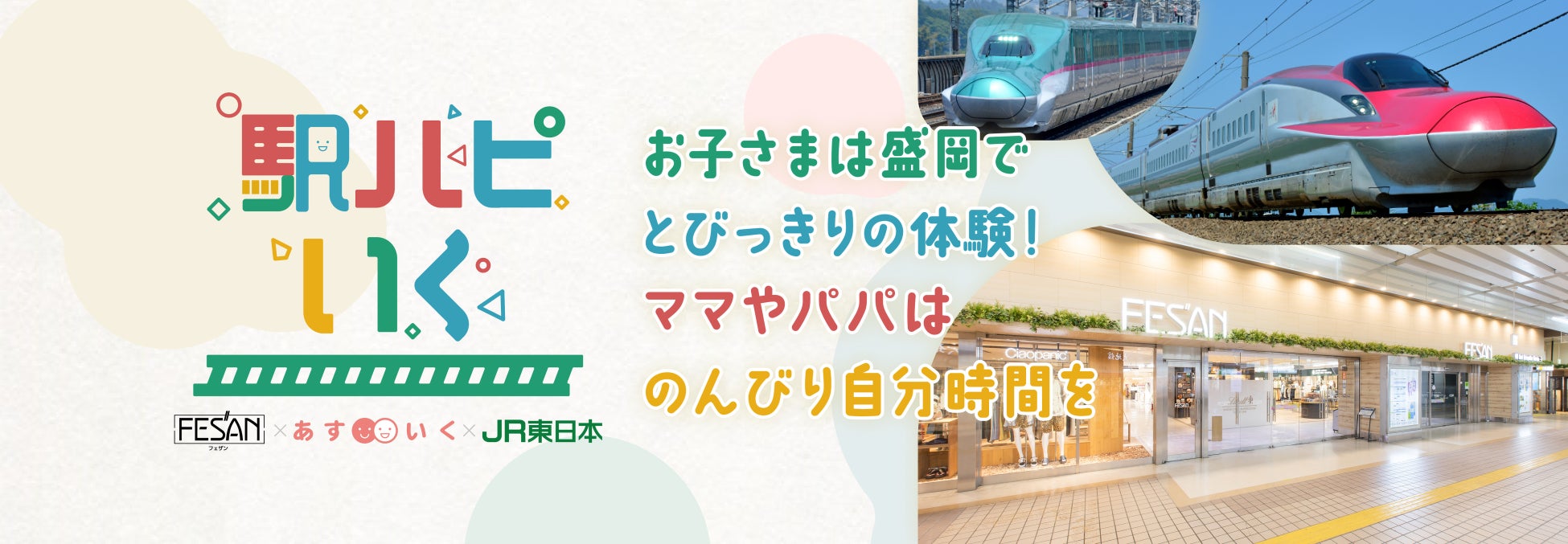 ショッピングセンター×一時保育の「ハピいく」と、駅や鉄道コンテンツを駅員さんと楽しむ「駅いく」が体験できる特別保育プログラム「駅ハピいく」を、盛岡駅ビル フェザンで開催。親子にハッピーな時間を作ります