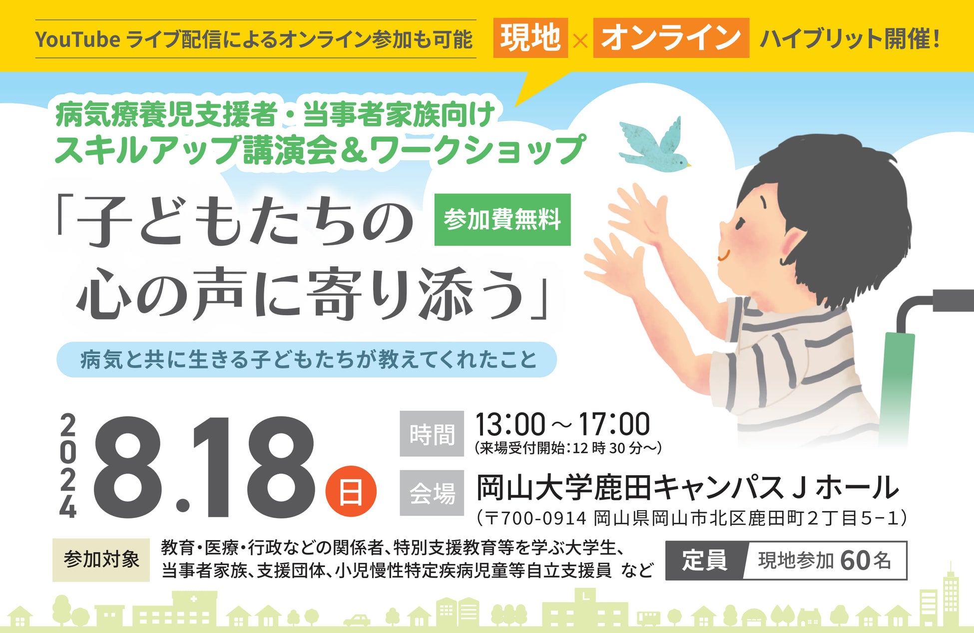 【参加無料】2024年8月18日(日)13時~現地開催&YouTubeライブ配信「子どもたちの心の声に寄り添う~病気と共に生きる子どもたちが教えてくれたこと~」