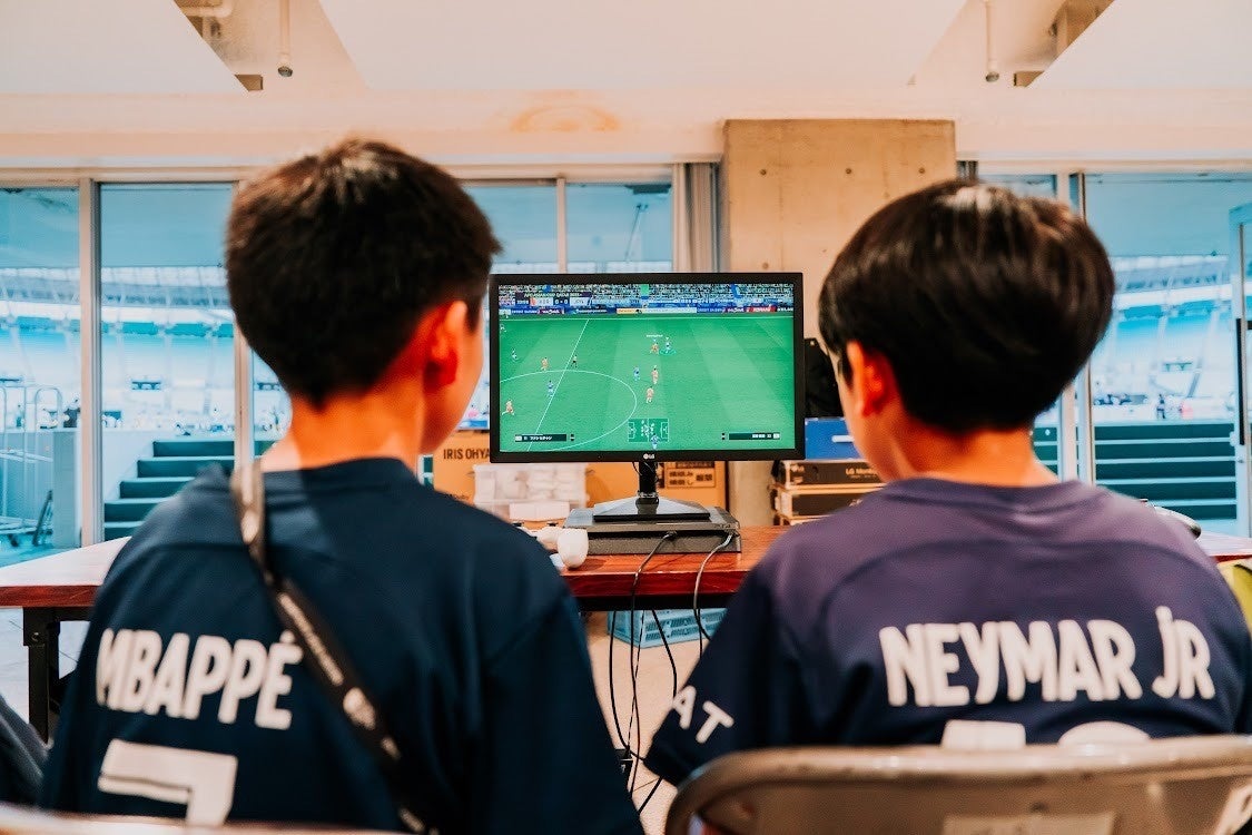 「KANSAI SOCCER FES2024」では、ヤンマースタジアム長居のミーティングルールにて、フィールドでも活躍しているサッカー少年少女たちにチームを組んでもらい、プロプレイヤーGENKIモリタさんと、eスポーツ「eFootball™」で1対チームでの対戦を楽しんでもらいました。