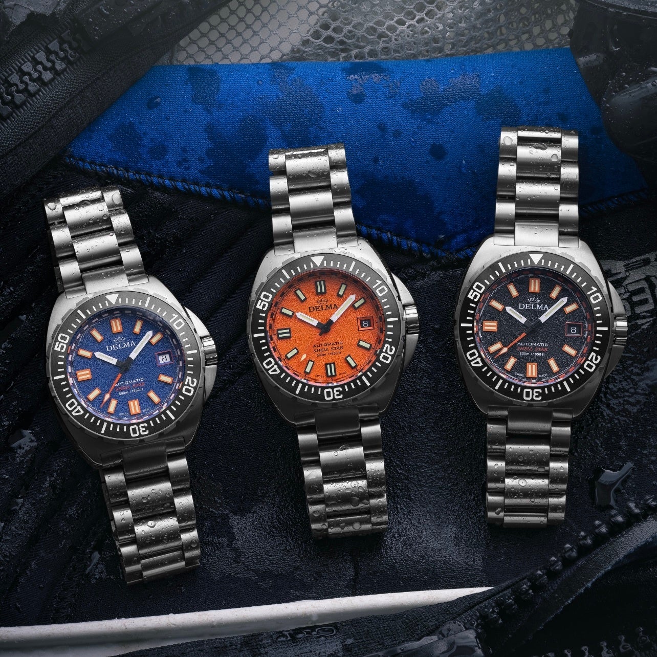 デルマのブランド初となる防水機能を備えたコレクション、「ペリスコープ」が発売された1969年から6年後、デルマは初のプロフェッショナル・ダイバーズウォッチとして、回転ベゼルを備えた「シェルスター」を1975年に発表しました。全てのデルマ・ダイバーズウォッチコレクションの原型となる「シェルスター」は、発表当時は50mの防水性能でしたが、技術の進歩により、特徴あるスポーティな外観はそのままに、2016年に現在のデザインの新しい「シェルスター」を生み出しました。500m防水性能を有し、シースルーバック、そして逆回転ベゼルを備えるという、1970年代には想像もできなかったようなスペックを備えた、ブランドの現代的な傑作時計が完成しました。