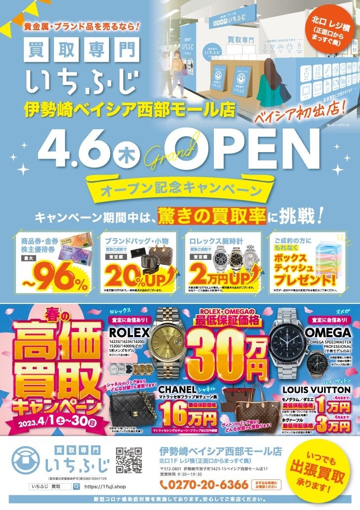 【群馬県伊勢崎市初出店】ブランド・リユース「買取専門 いちふじ」伊勢崎市のベイシア西部モール店に4月6日に出店