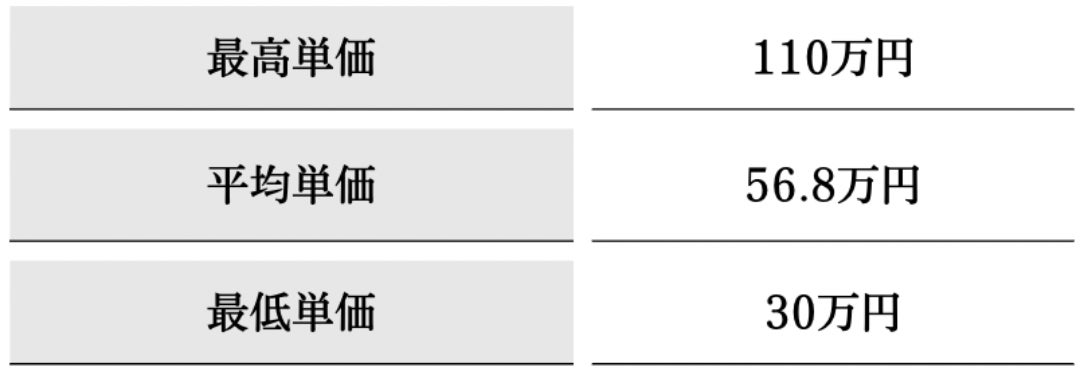 ■営業フリーランスの案件の月額平均単価は56.8万円|最低単価は30万円