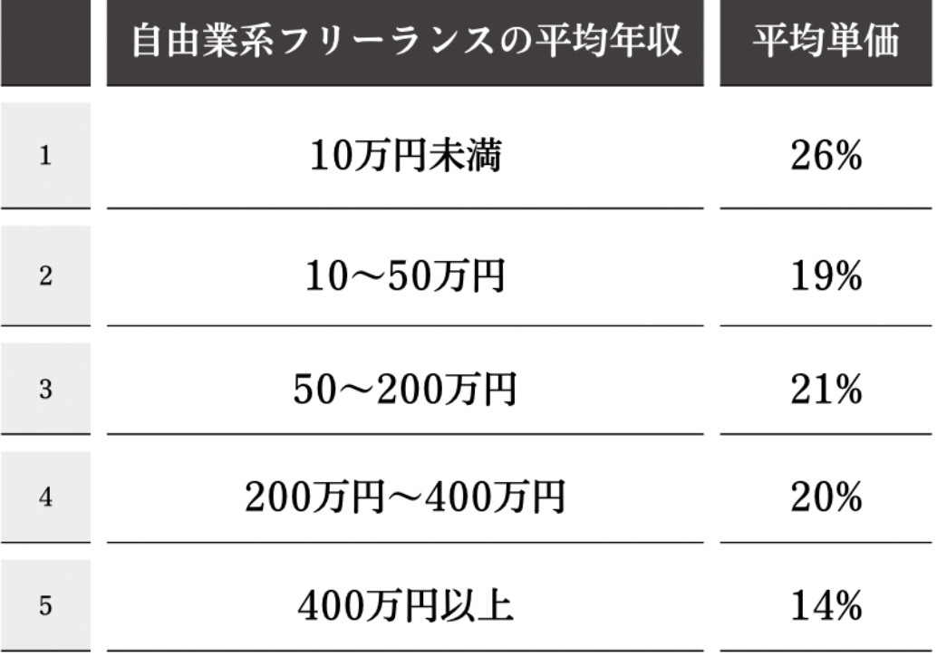 近年、働き方改革が進み注目を集めているフリーランス市場。正社員と比較したフリーランス全体の平均年収は低いものの、案件単価を見てみるとその収入の多さは一目瞭然でした。