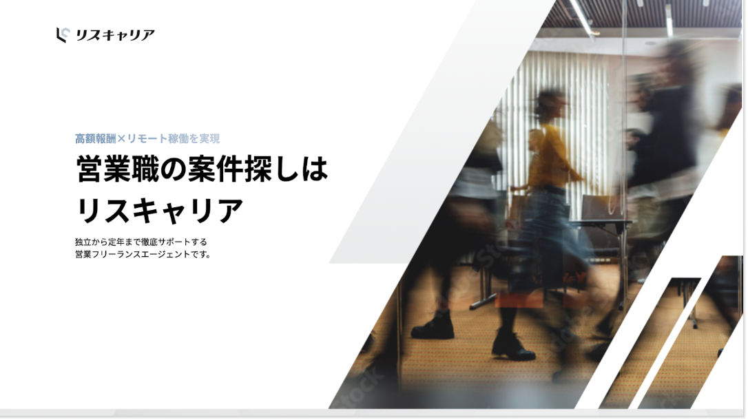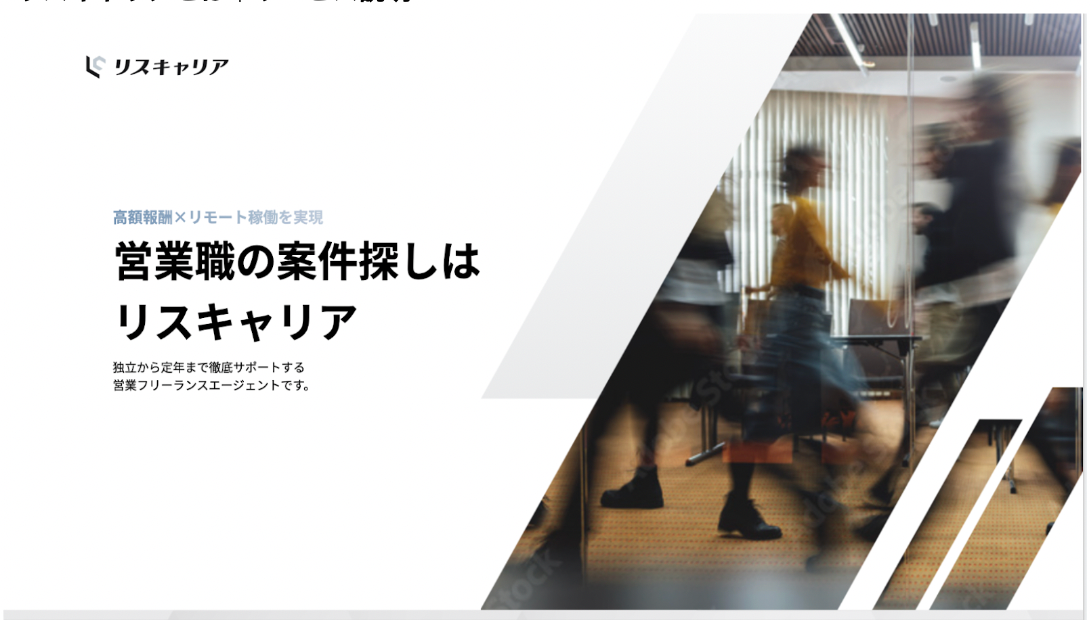 リスキャリアは、固定報酬の営業フリーランスに特化したマッチングサービスです。