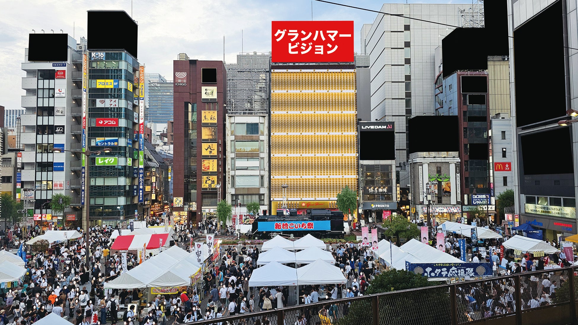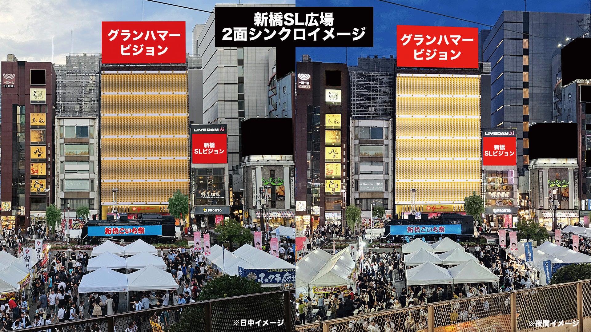 111㎡の特大屋外大型ビジョン『グランハマービジョン』が新橋SL広場に誕生! エリア初の『2面シンクロプラン』も登場!!