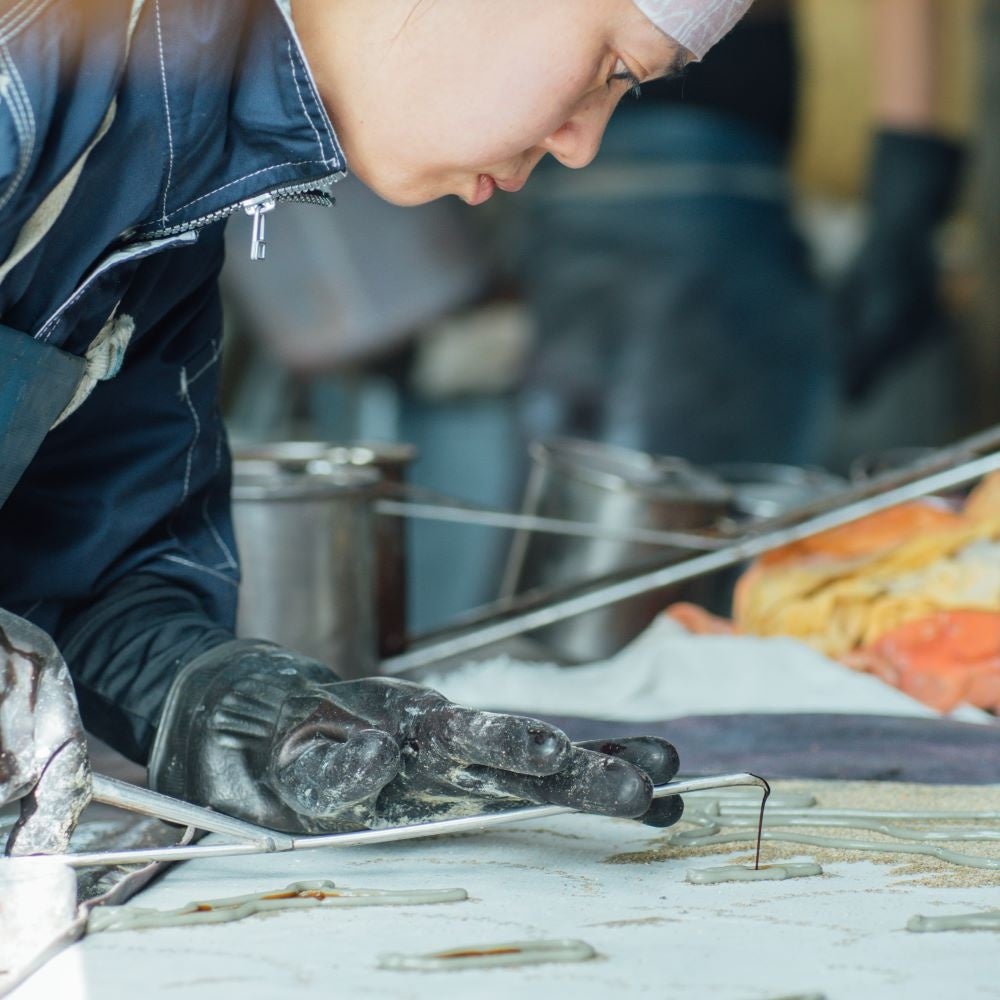 かまわぬの手ぬぐいは、明治時代から続く染めの技法「注染(ちゅうせん)」を用いて作られています。